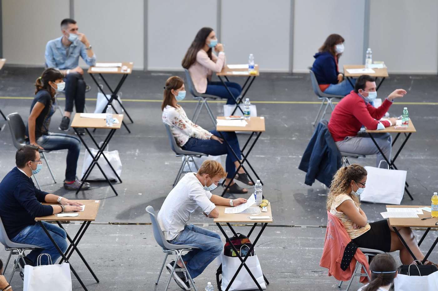 Le aule concorso devono essere dotate di postazioni operative costituite da scrittoio e sedia posizionate a una distanza, in tutte le direzioni, di almeno 1 metro l’una dall’altra.