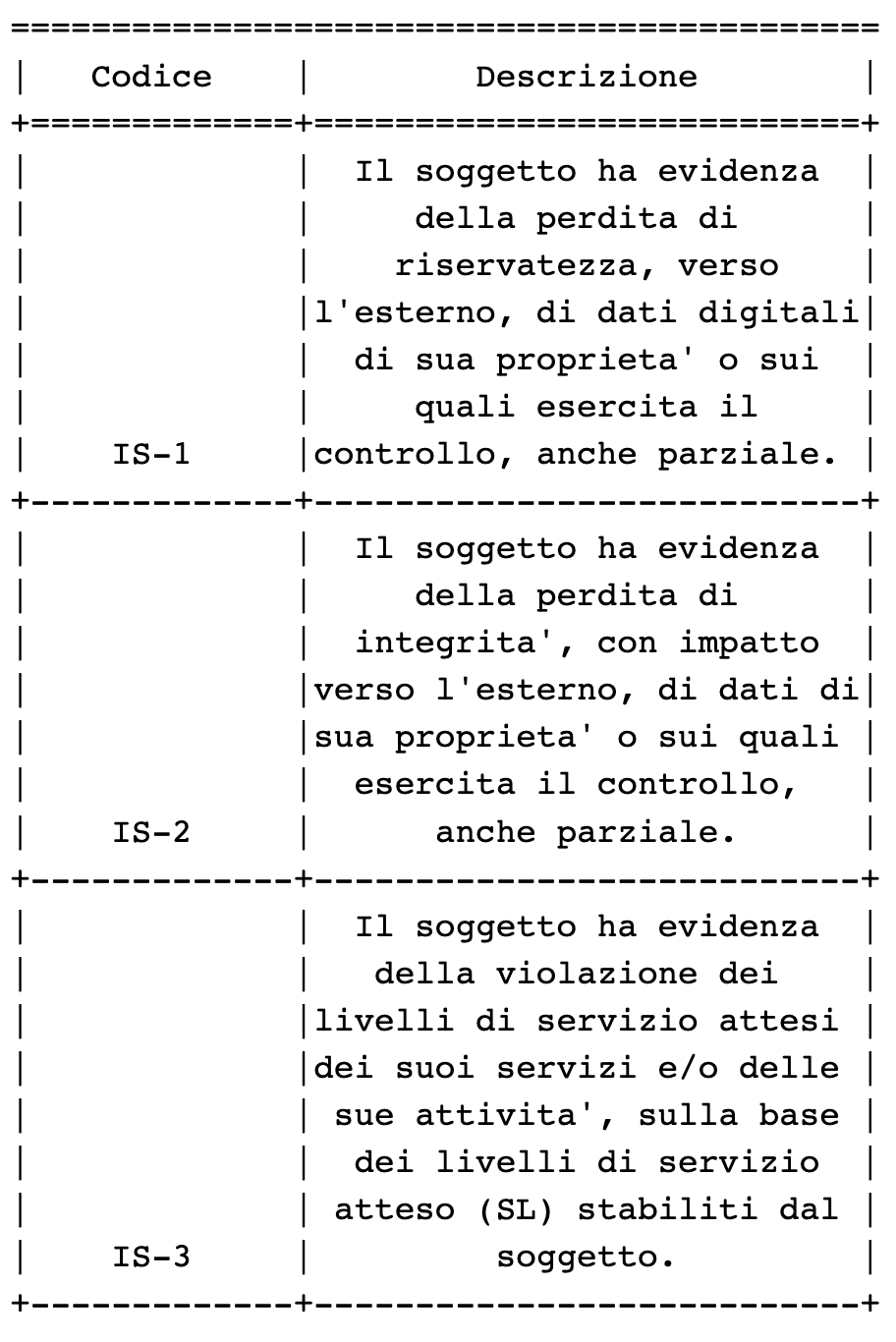 tassonomia di incidenti che devono essere notificati ai sensi del